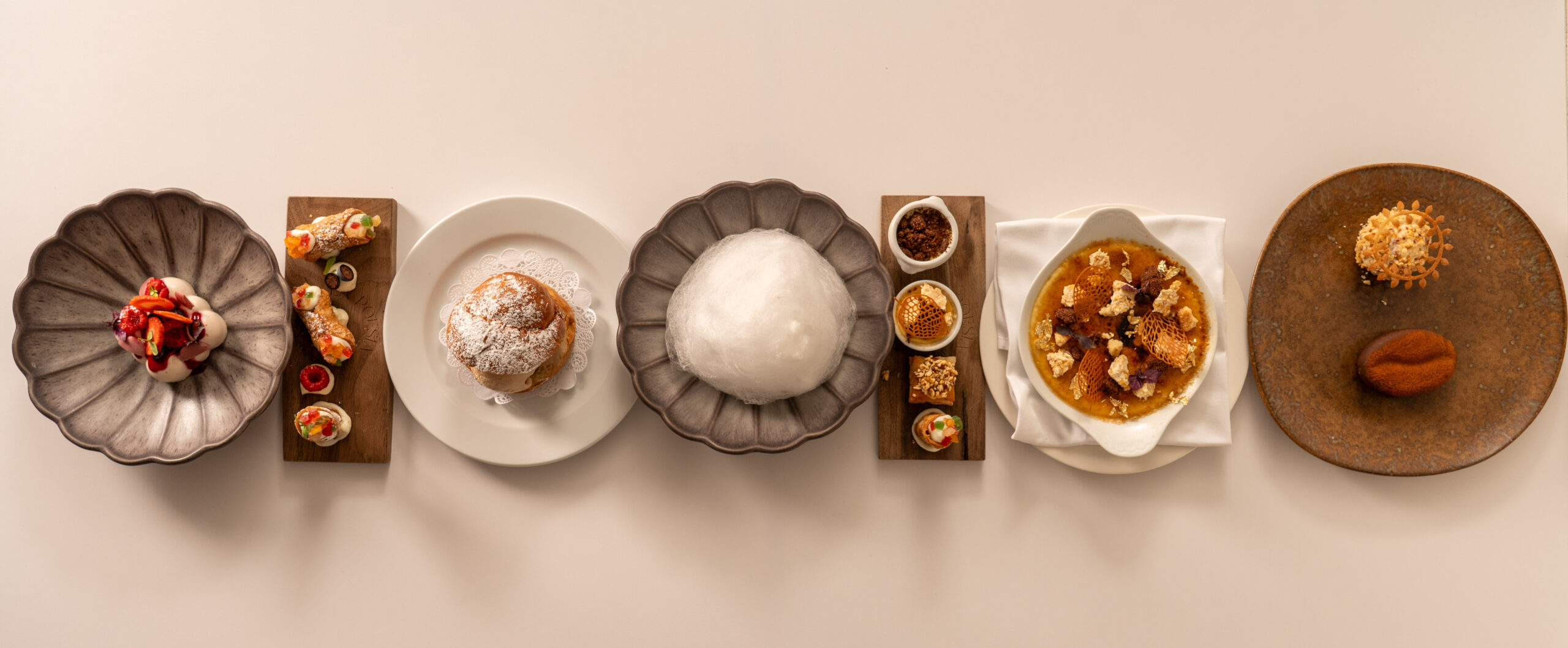 Crème brûlée à la cardamome, crumble au cacao, croquant au chocolat blanc et noix de coco
